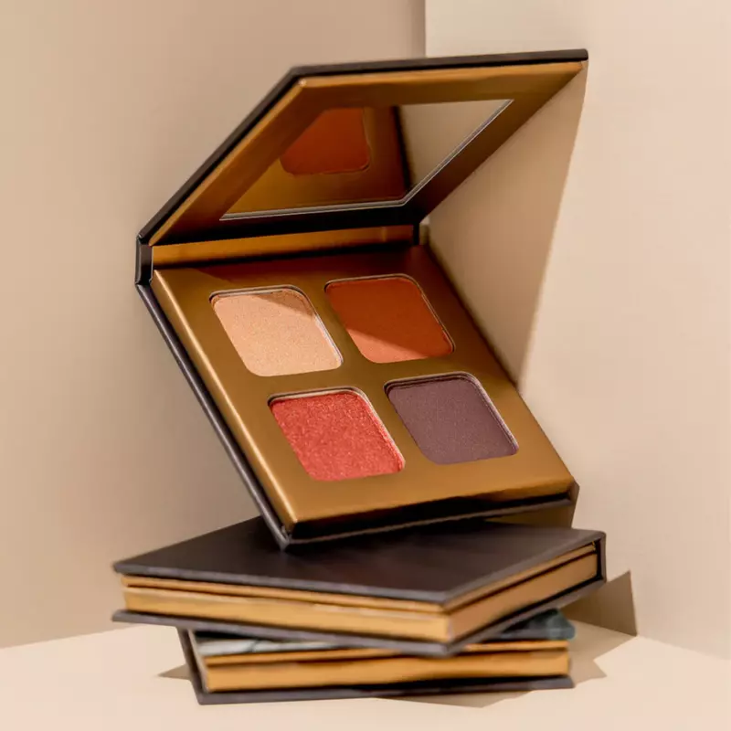Met vier perfect op elkaar afgestemde tinten – een diepe matte kleur, twee satijnen overgangstinten en een glanzende highlighter – creëer je moeiteloos zowel zachte als krachtige ooglooks.