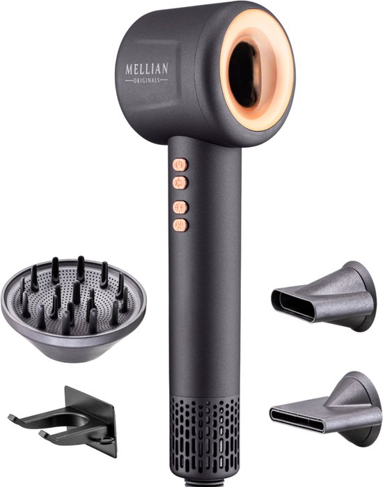 Ontdek de kracht van moeiteloos stylen met de Mellian Secret Blow. Deze veelzijdige airstyler combineert föhnen, krullen, stijlen en volume creëren in één compacte tool. Perfect voor iedereen die snel en eenvoudig een professionele look wil, gewoon vanuit huis. De Secret Blow maakt gebruik van slimme luchtstroomtechnologie om je haar te stylen zonder extreme hitte. Dit helpt haarbeschadiging te voorkomen en houdt je haar gezond, sterk en glanzend. Dankzij ionische technologie wordt statisch haar verminderd en blijft pluis onder controle. Je haar voelt zijdezacht aan en krijgt een natuurlijke, gezonde glans. Met meerdere warmte- en blaasstanden stem je de styling perfect af op jouw haartype — van fijn tot dik en van steil tot krullend haar. Met de Mellian Secret Blow bespaar je tijd, geld én moeite. Geen losse stylingtools meer nodig — alles wat je nodig hebt zit in één apparaat. Ideaal voor je dagelijkse routine of een snelle touch-up voor je de deur uitgaat.