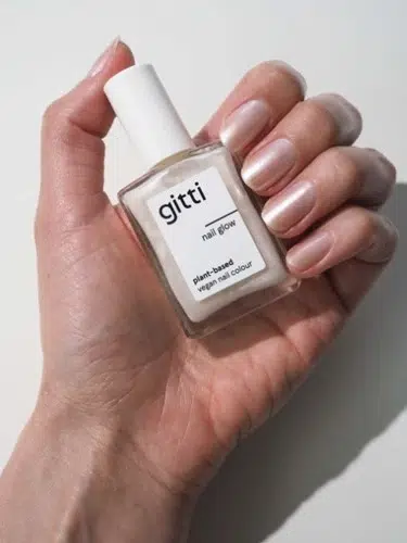 De Gitti Nail Glow is een vegan, plantaardige nagellak-topcoat die je manicure transformeert met een prachtige, subtiele chrome-achtige glow. In plaats van microplastics gebruikt deze formule ethisch gewonnen mica en minerale deeltjes die zorgen voor een zachte, glanzende finish — zonder agressieve ingrediënten. Met tot wel 82% ingrediënten van natuurlijke oorsprong krijgt je manicure een verzorgde uitstraling terwijl je nagels worden beschermd en versterkt.