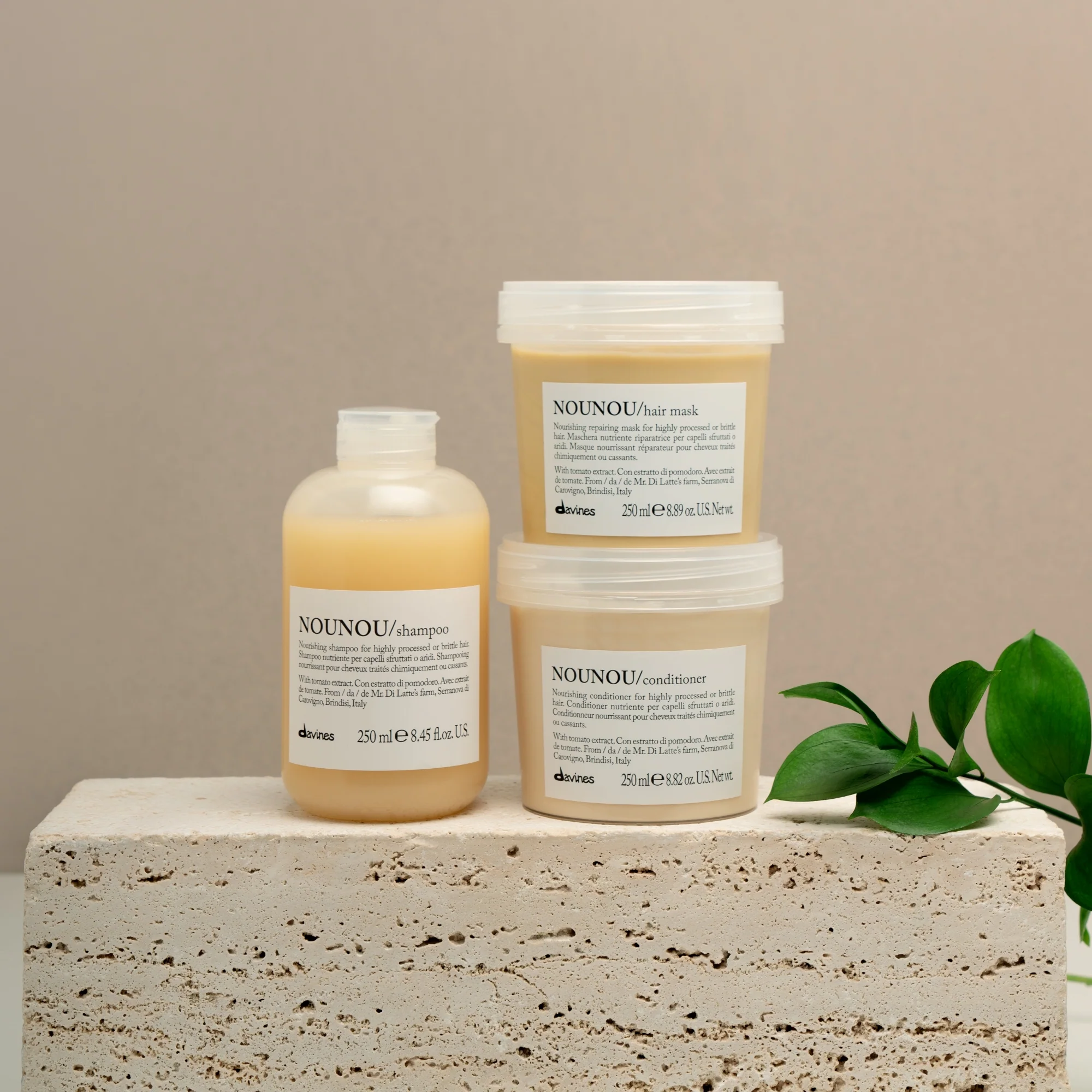 De NOUNOU Hair Mask is een intensief voedend & herstellend haarmasker, speciaal ontwikkeld voor droog, broos of chemisch behandeld haar — bijvoorbeeld na verven, bleken, permanenten of veel styling. Dit masker dringt diep door in de haarvezel om vocht, voeding en herstel te bieden, waardoor beschadigd haar weer soepel, sterk en glanzend wordt. Na de behandeling voelen je lokken zijdezacht, soepel en makkelijk doorkambaar aan, zonder dat ze zwaar of vet worden.