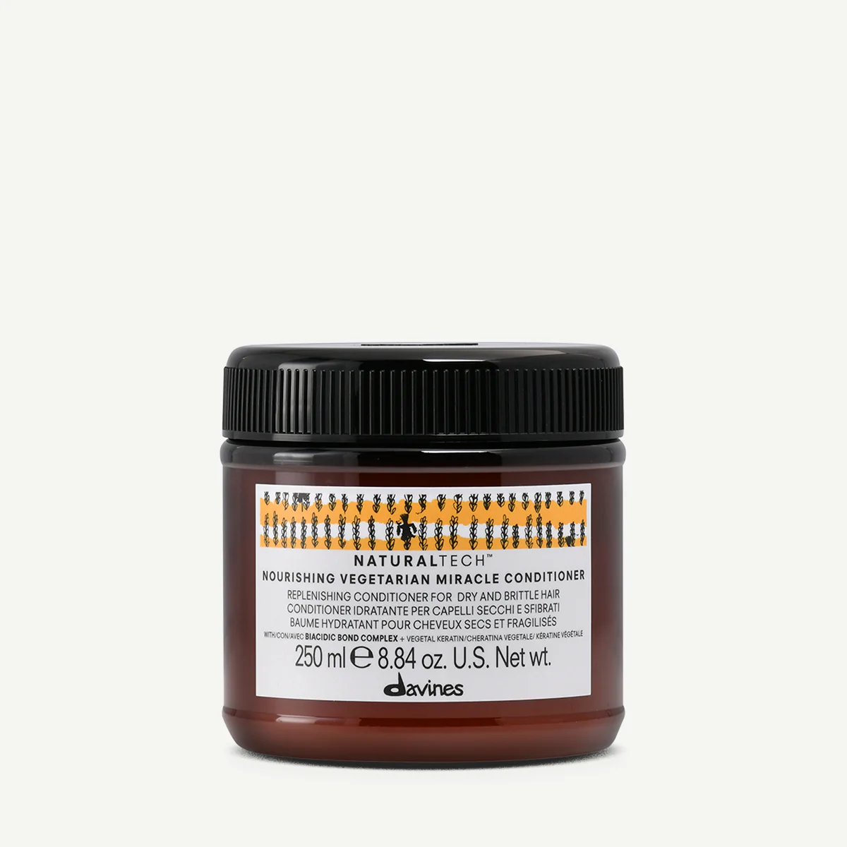 De Davines Nourishing Vegetarian Miracle Conditioner is een rijke, herstellende conditioner speciaal ontwikkeld voor droog, broos of beschadigd haar. Deze conditioner biedt diepe hydratatie en maakt het haar direct zachter, glanzender en makkelijker doorkambaar. De haarstructuur wordt versterkt, waardoor haar minder snel breekt en sterker aanvoelt. Dankzij de voedende en herstellende werking herstelt beschadigd haar zijn soepelheid en vitaliteit — van wortel tot punt.